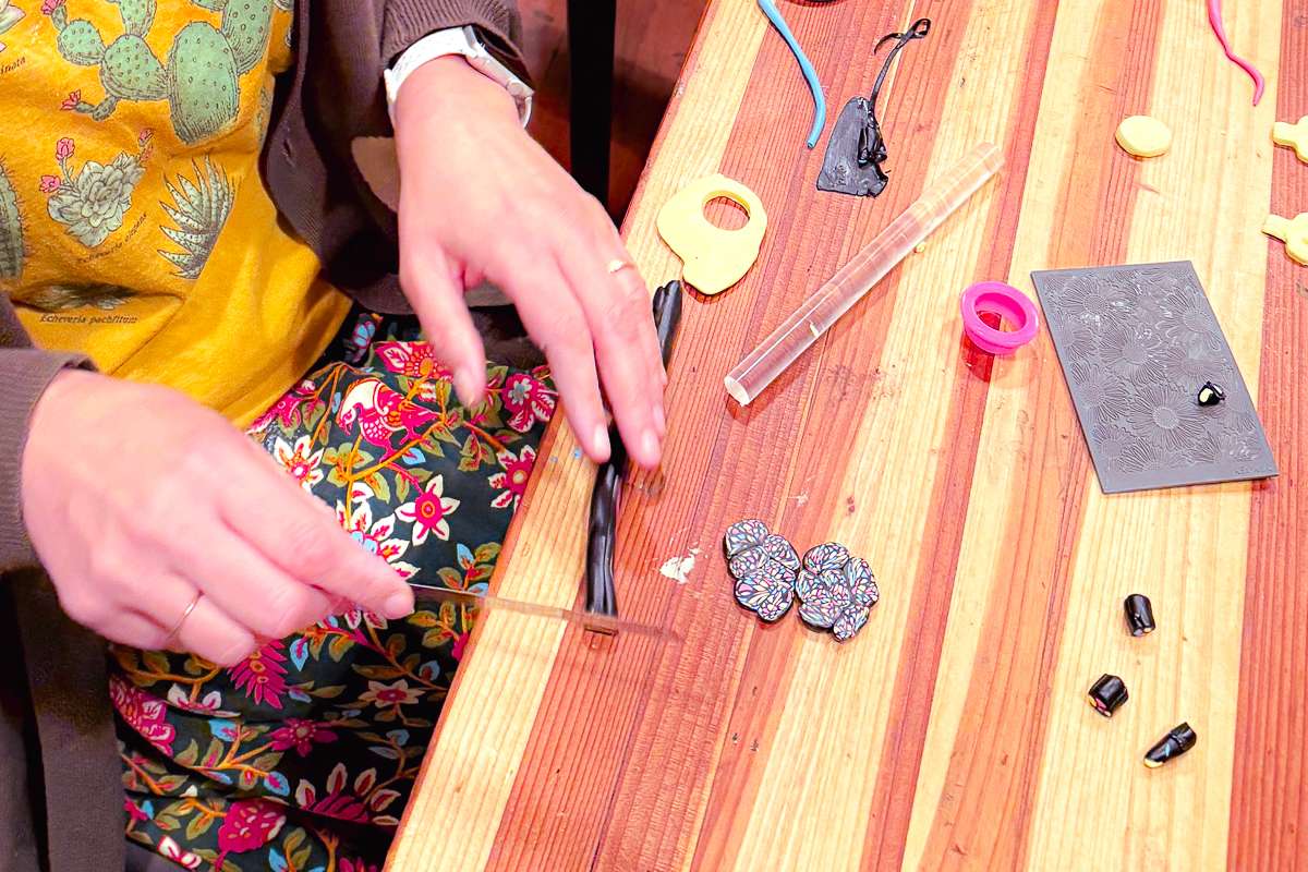 To begin, you’ll get to know the polymer clay medium through a series of short lessons on color mixing and clay handling. Sophie will teach you popular techniques like marbling, crafting delicate miniature florals, and working with carving and modeling tools. You’ll have access to an array of cutters and textured rollers to create your own earring shapes. You will learn how to prepare clay sheets to the preferred thickness, then move on to crafting, baking, assembling, and finishing your unique pieces. Each student will leave with at least two sets of custom-made earrings, as well as a working knowledge of the tools, techniques, and supplies needed to keep making polymer jewelry at home!