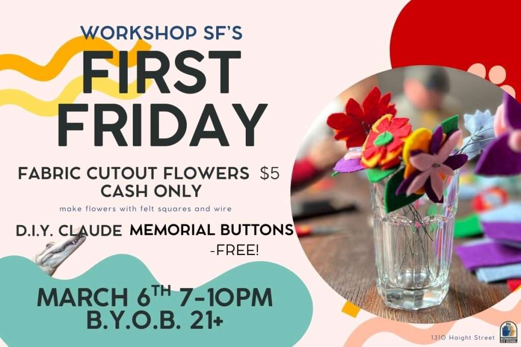 ALL CLASSES TAKE PLACE AT WORKSHOP SF LOCATED AT 1310 HAIGHT STREET UNLESS OTHERWISE NOTED ON THE TITLE AND LISTING.